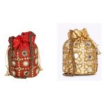 Combo – Designer Embroidered Potli Bag – Golden & Red