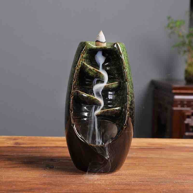 This sculptural smoke fountain features a staircase-like design that channels backflow incense smoke through its steps, creating a tranquil ?smoke waterfall? effect. Perfect for meditation spaces, altars, or as an artistic center-piece, it offers both visual intrigue and aromatic ambiance?bringing serenity and style to any home setting.