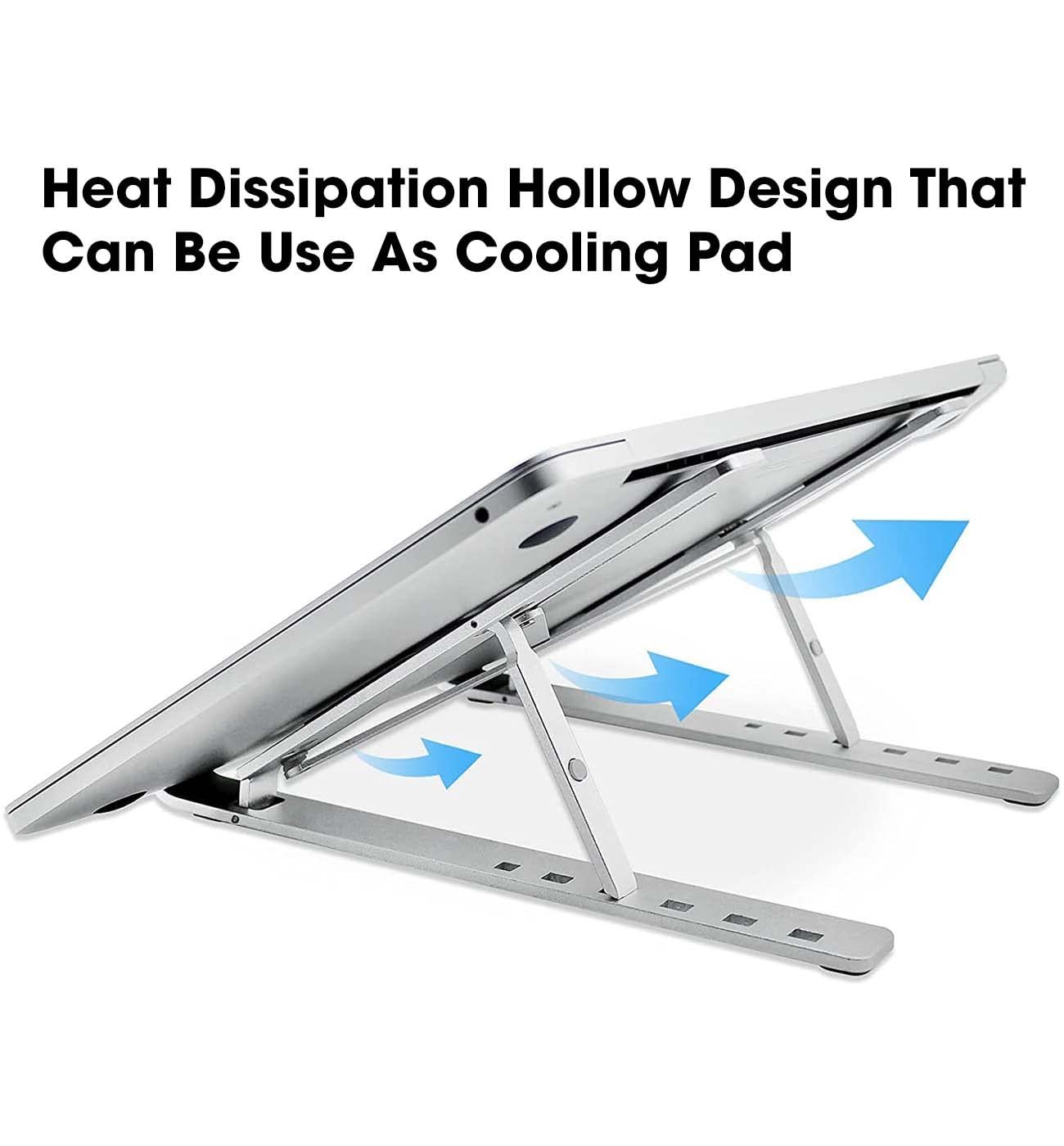Laptop Stand, Fold-Up, Adjustable, Ventilated, Portable Laptop Holder for Desk, Aluminum Foldable Laptop Ergonomic Compatibility with up to 15.6-inch Laptop, All Mac, Tab, and Mobile (Silver)