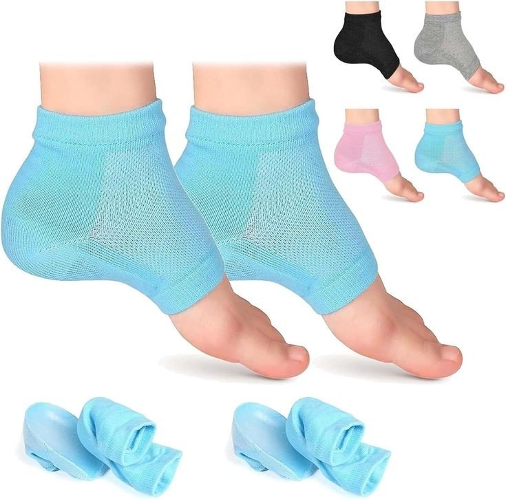 Moisturising Gel Heel Socks are specially designed self-care socks that deeply hydrate, soften, and repair dry, cracked heels. Lined with therapeutic gel infused with nourishing ingredients like vitamin E, aloe vera, or essential oils, these socks lock in moisture and promote skin healing while you rest or go about your day. Perfect for overnight treatments or daily wear, they turn rough, tired feet into smooth, healthy heels effortlessly.