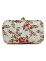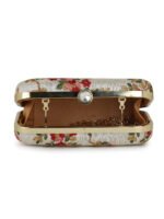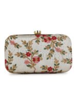 Home W_Bags Clutches Off White Embroidered Box Clutch For Girls and womens