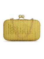 Home W_Bags Clutches Yellow & Gold Embroidered Box Clutches For Girls and womens